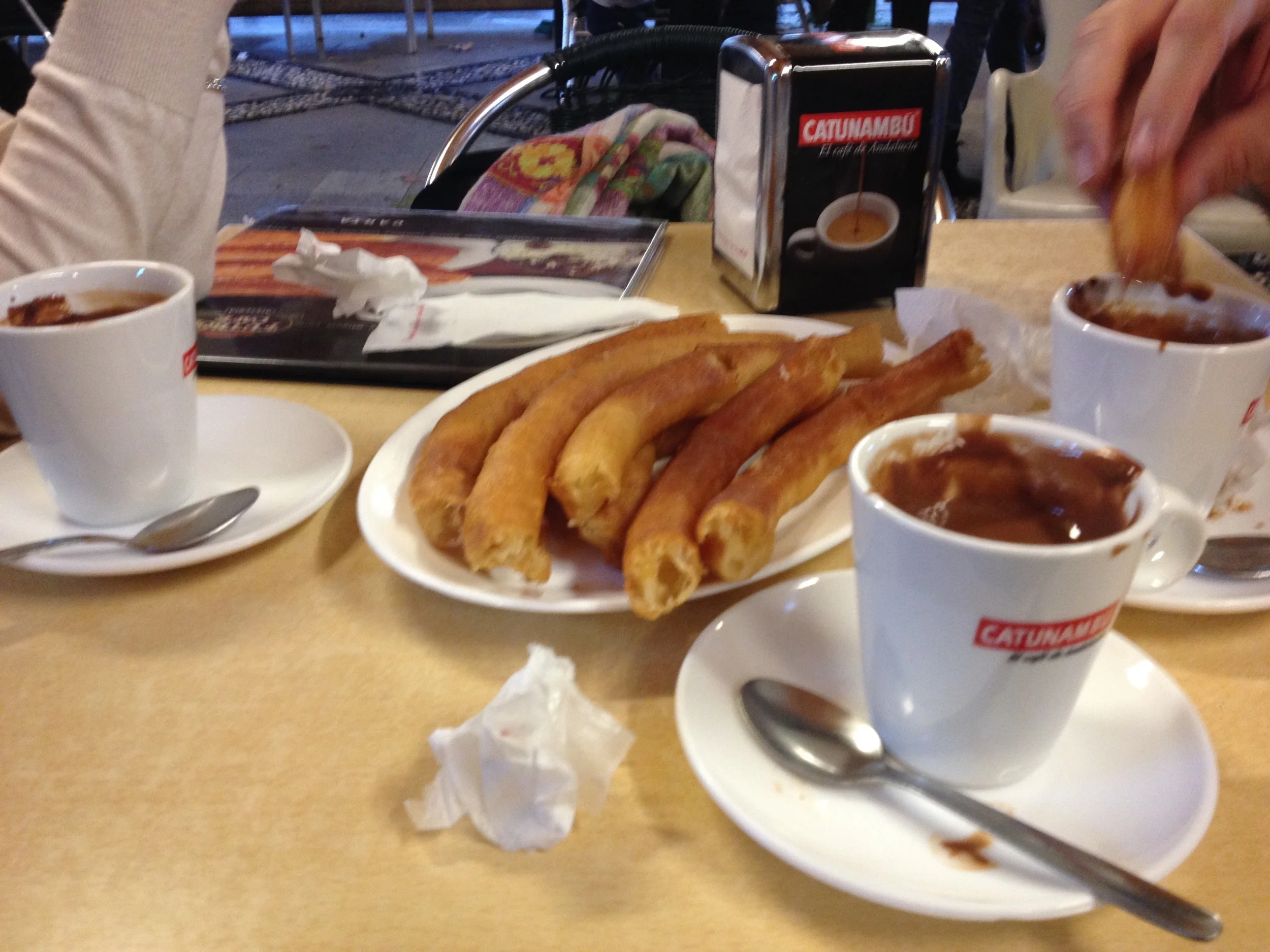 The traditional churros con chocolate at Café Futbol in Plaza Mar
