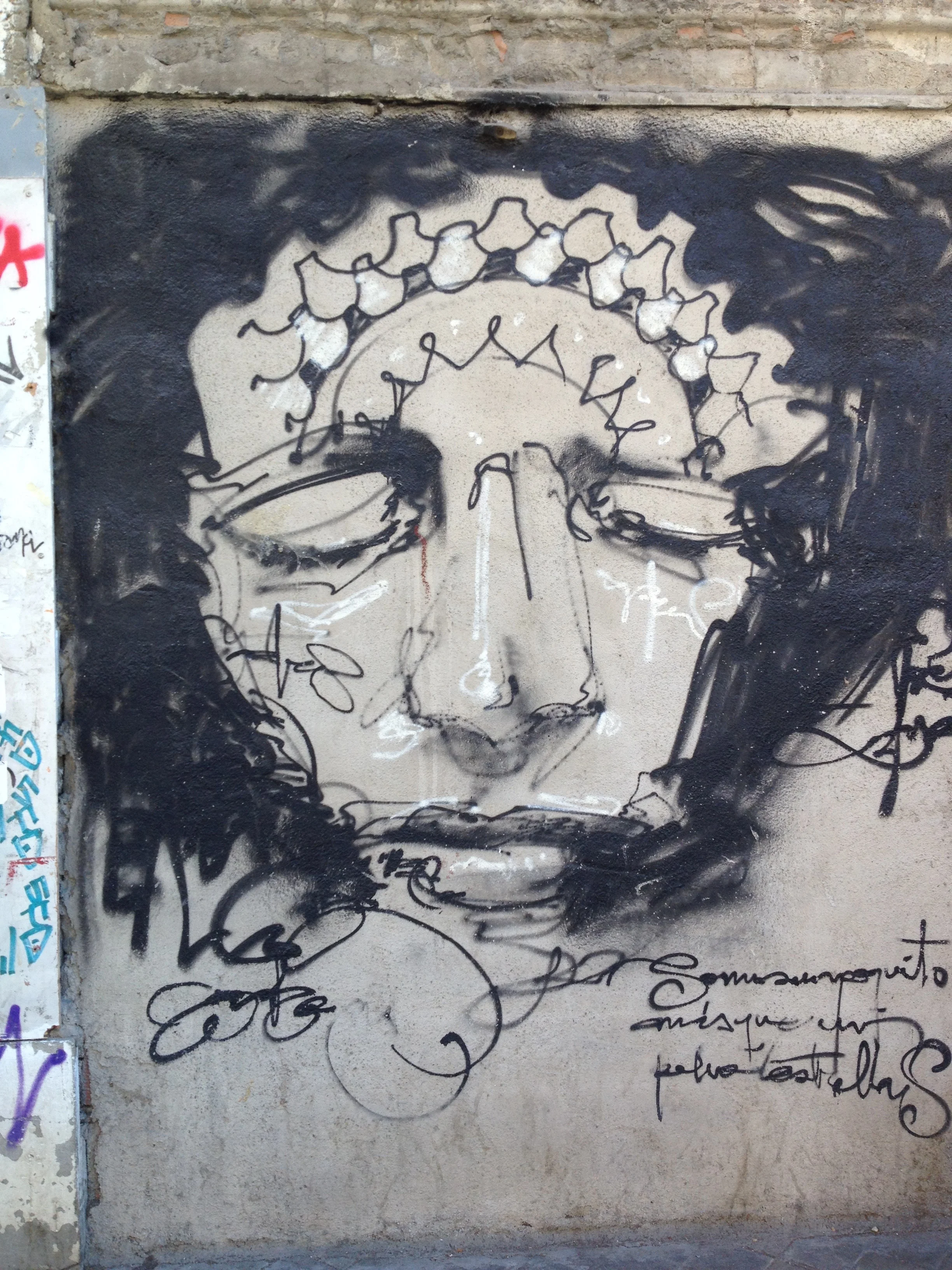 Graffiti by El Niño de las Pinturas, a Granadan street artist, in the Realejo neighborhood (the old Jewish quarter of the city).