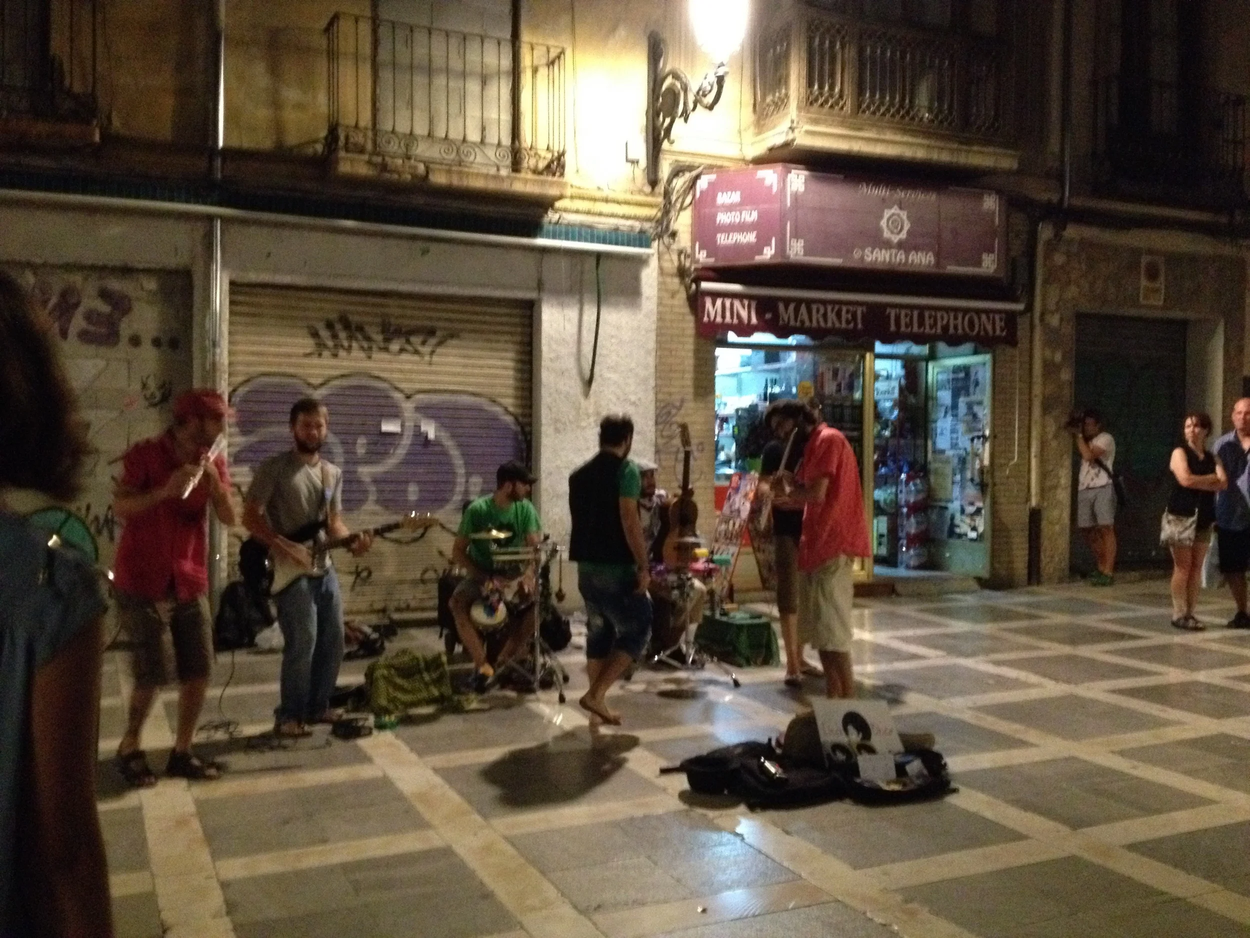 Street musicians jamming in Plaza Nueva, a fairly normal sight during Granada's warmer months.